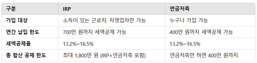 2-3. IRP와 연금저축의 차이점 및 한도 비교