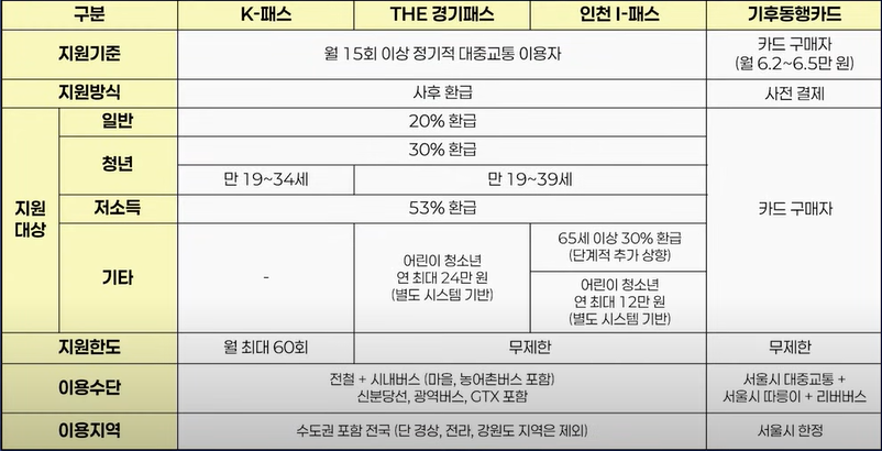 K-패스 vs 기후동행카드 비교